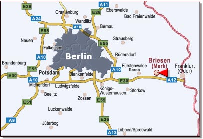 Der Berliner Flughafen Schönefeld liegt ca. 60 Autobahnkilometer von der Pension entfernt. Direkt vom Flughafen kann man mit der Berliner S-Bahn in Richtung Ostbahnhof fahren und dort in den RE1 einsteigen. Dieser fährt, wie oben beschrieben, direkt nach Briesen.